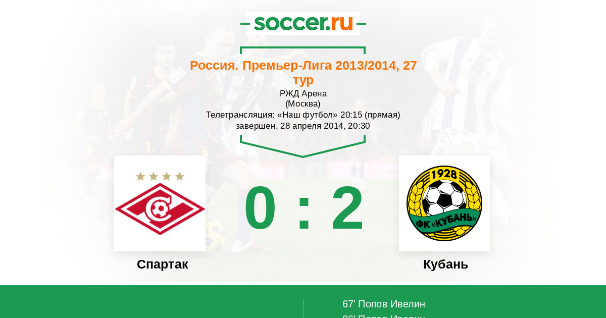 67' (0:1) Попов Ивелин (71) (Хубулов Арсен (9))