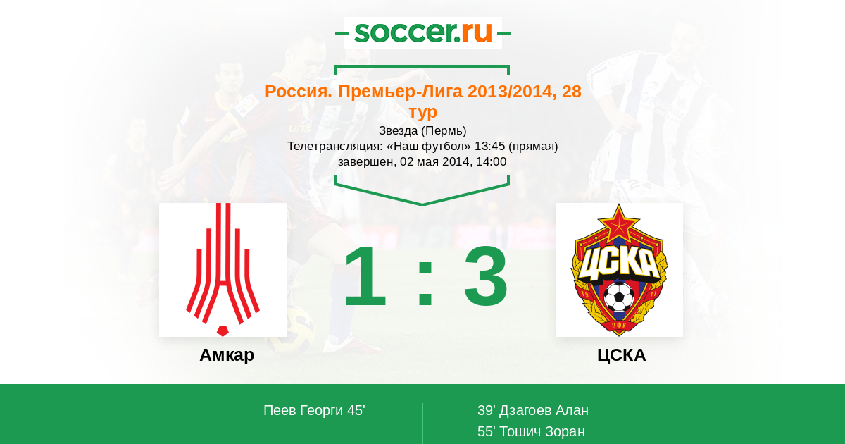 Протокол матча Амкар против ЦСКА