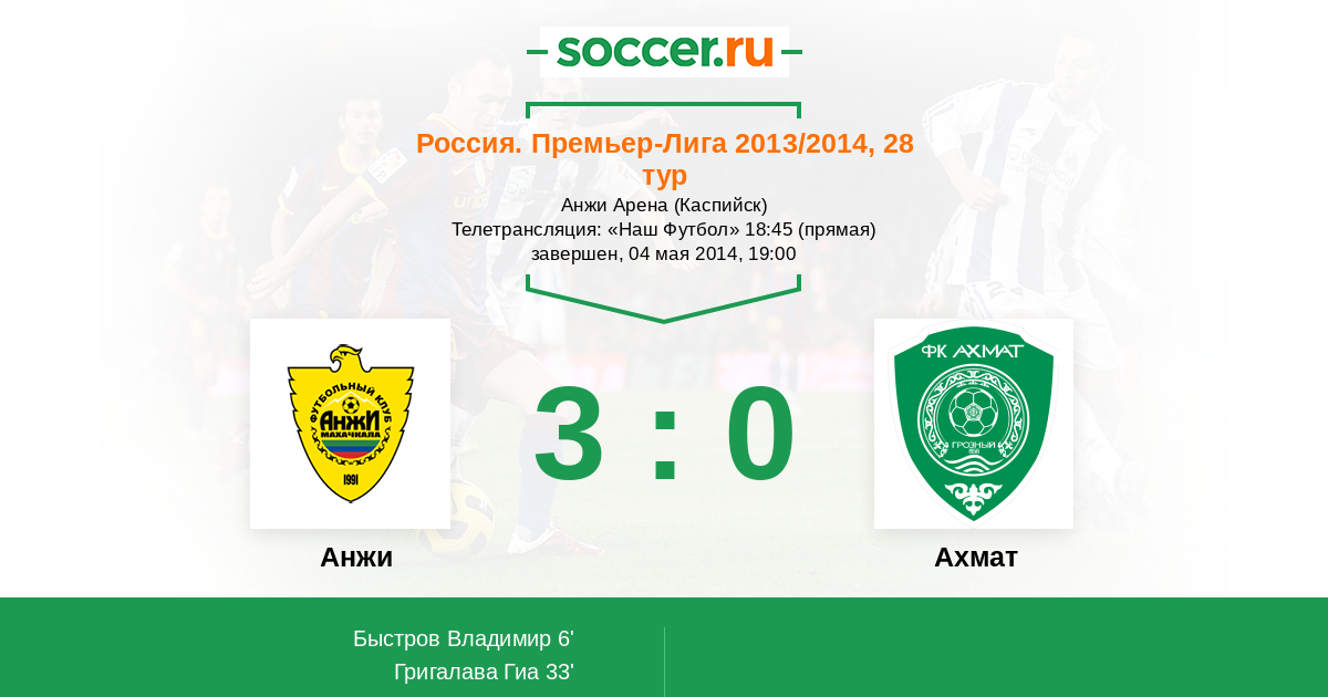 Протокол матча Анжи против Терек