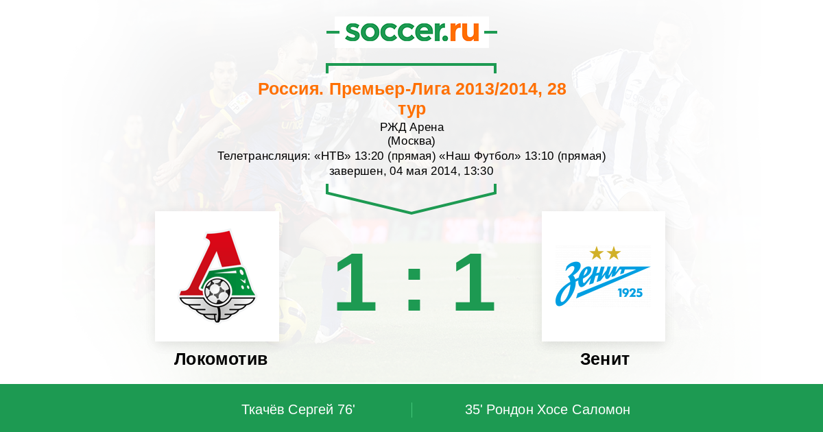 Телетрансляция: «НТВ» 13:20 (прямая) «Наш Футбол» 13:10 (прямая)