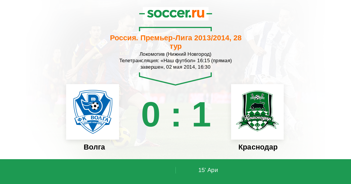 Протокол матча Волга против Краснодар
