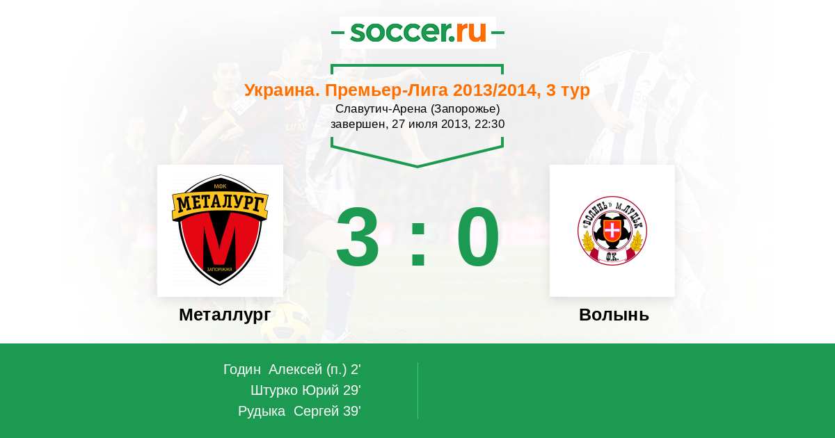 Протокол матча Металлург против Волынь