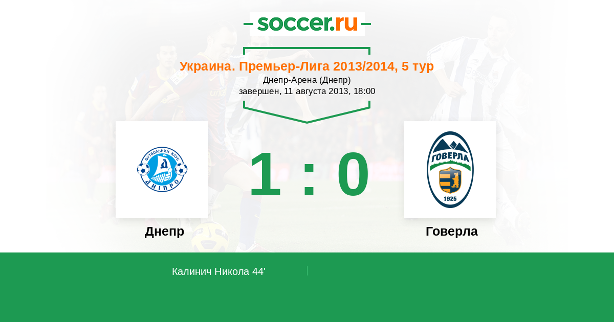 Протокол матча Днепр против Говерла