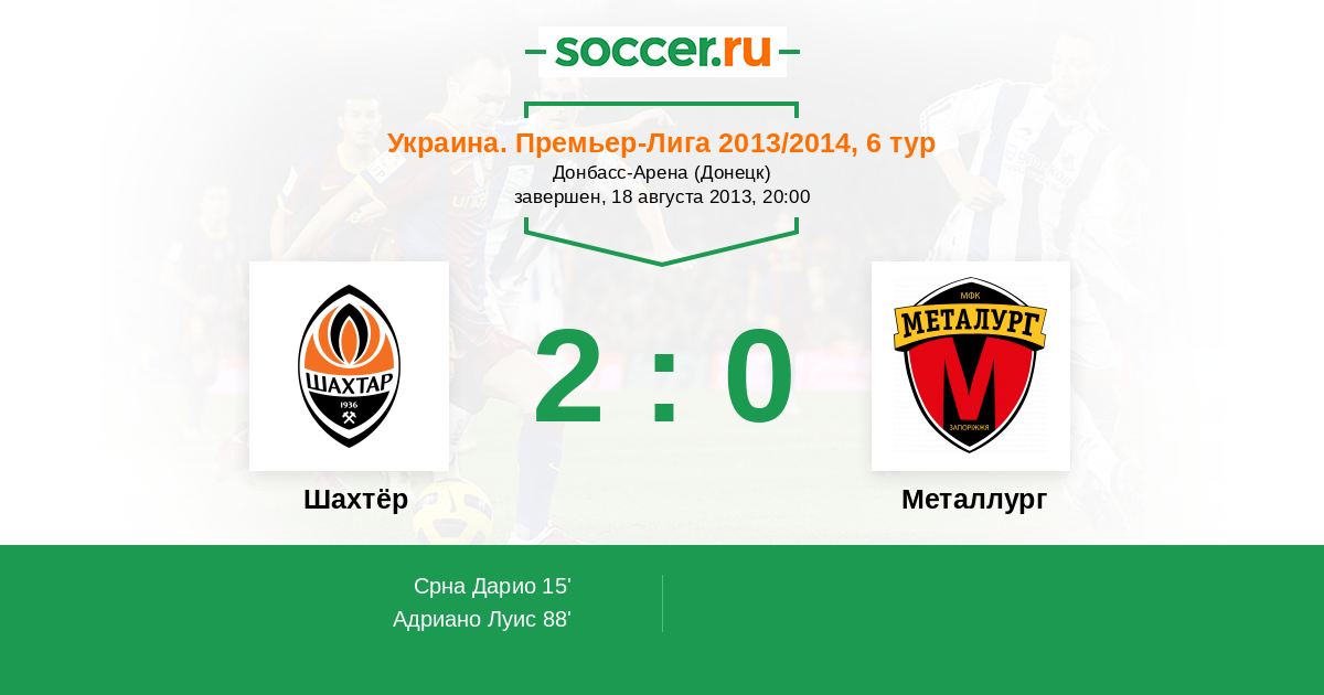 Протокол матча Шахтёр против Металлург
