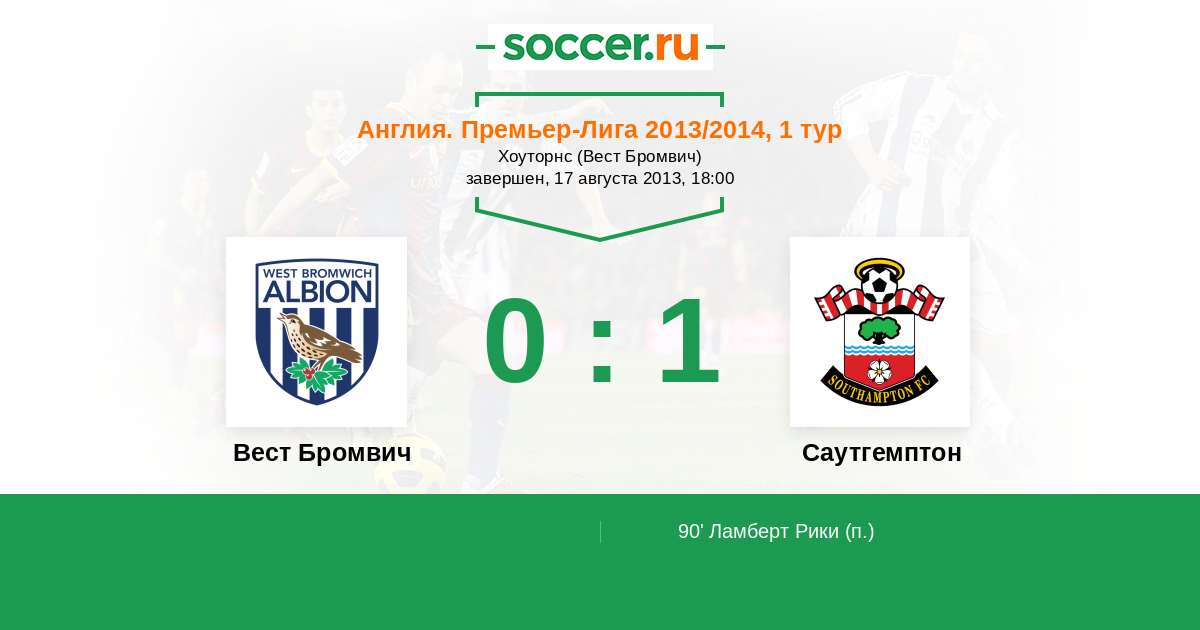 Протокол матча Вест Бромвич против Саутгемптон