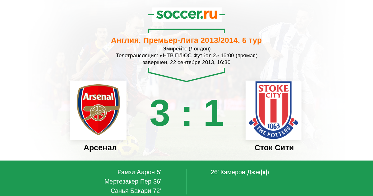 72' (3:1) Санья Бакари (3) (Озил Месут (11))