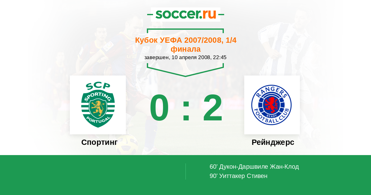 Протокол матча Спортинг против Рейнджерс