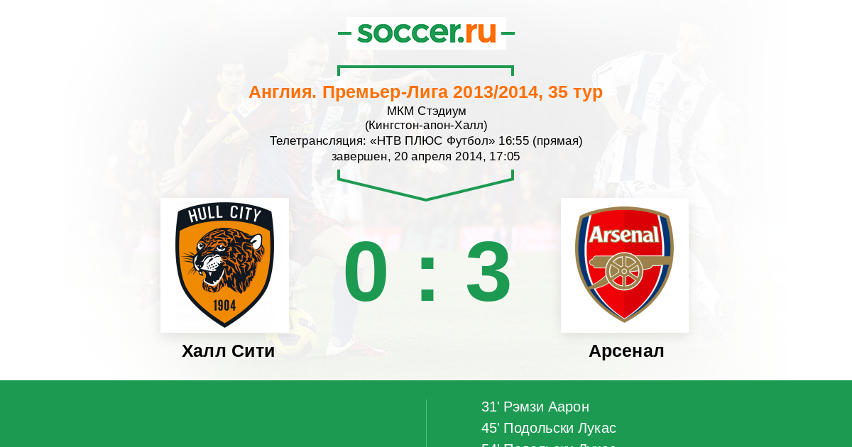 Протокол матча Халл Сити против Арсенал