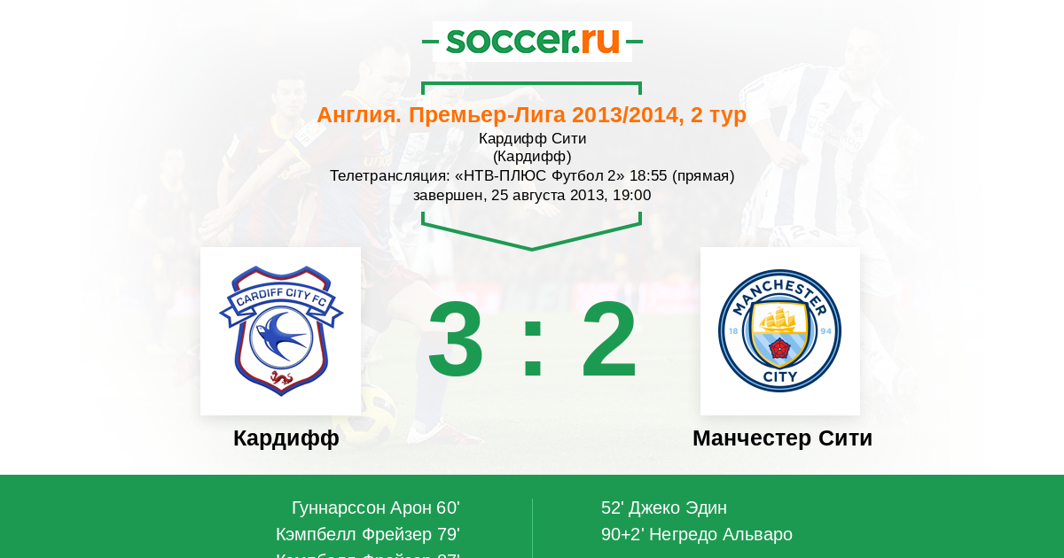 52' (0:1) Джеко Эдин (10) (Агуэро Серхио (16))