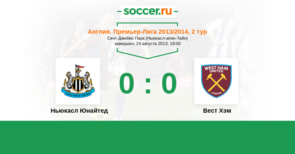 Протокол матча Ньюкасл Юнайтед против Вест Хэм