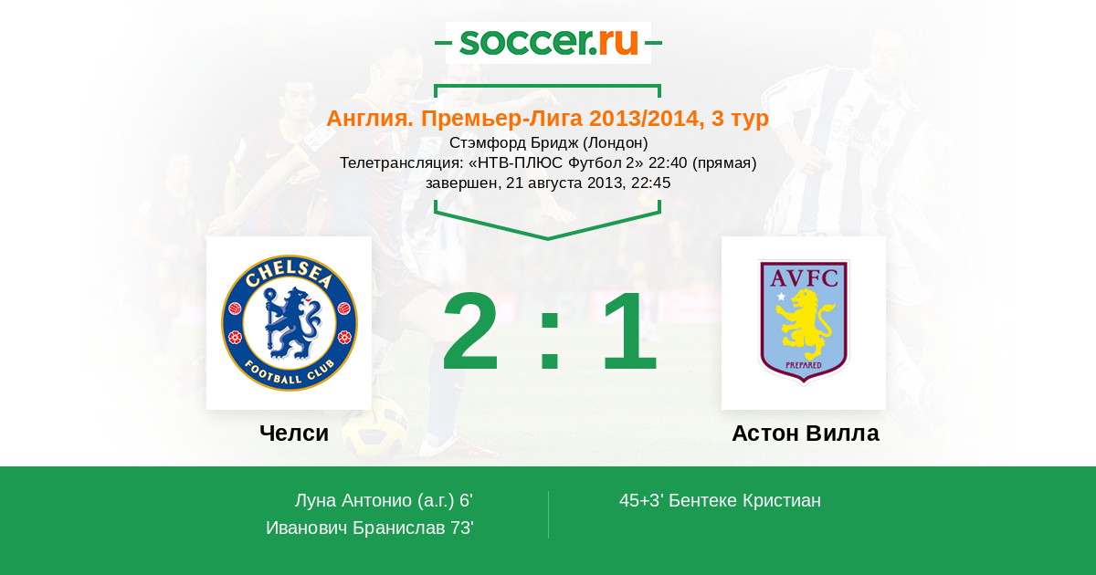 73' (2:1) Иванович Бранислав (2) (Лэмпард Фрэнк (8))