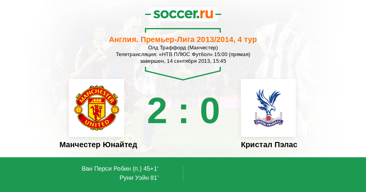 Протокол матча Манчестер Юнайтед против Кристал Пэлас