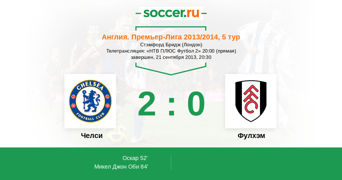 84' (2:0) Микел Джон Оби (12) (Терри Джон (26))