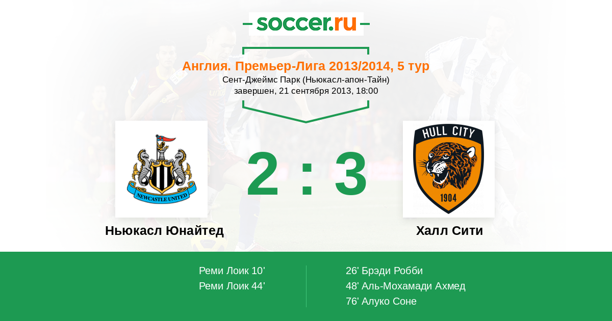 Протокол матча Ньюкасл Юнайтед против Халл Сити