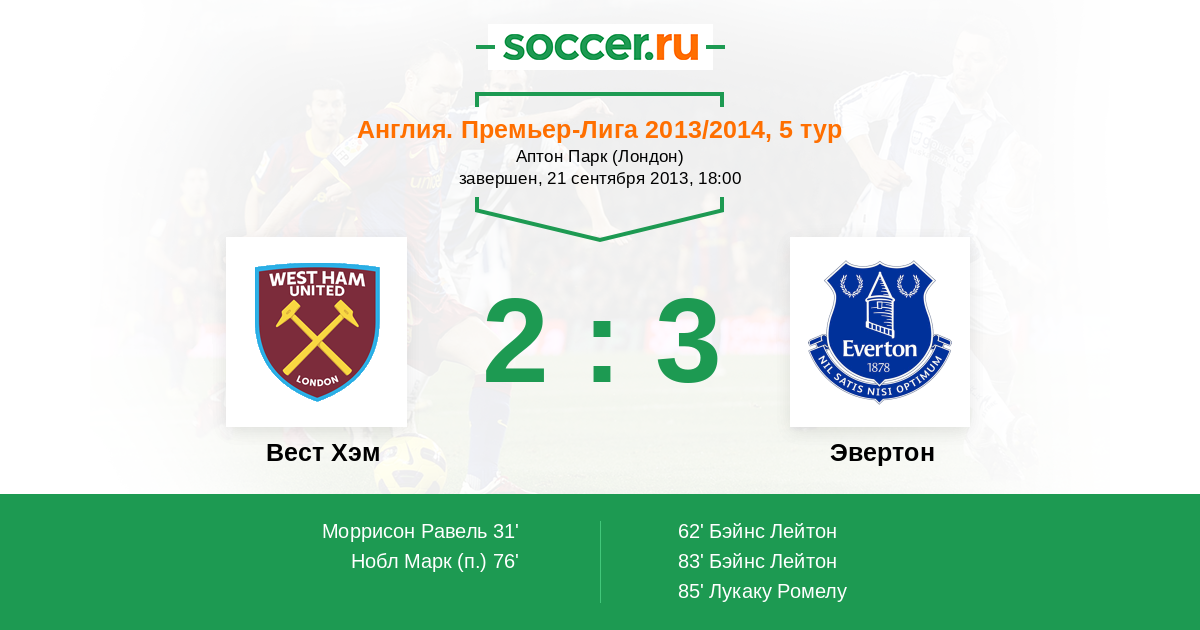 Протокол матча Вест Хэм против Эвертон
