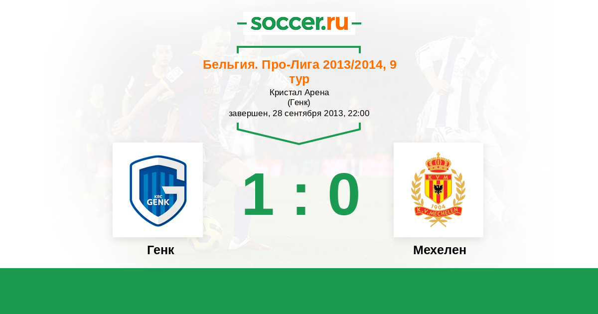 Бельгия. Про-Лига 29.09.2012 Генк Логотип футбольный клуб Генк 2:1 Логотип футбольный клуб Мехелен Мехелен