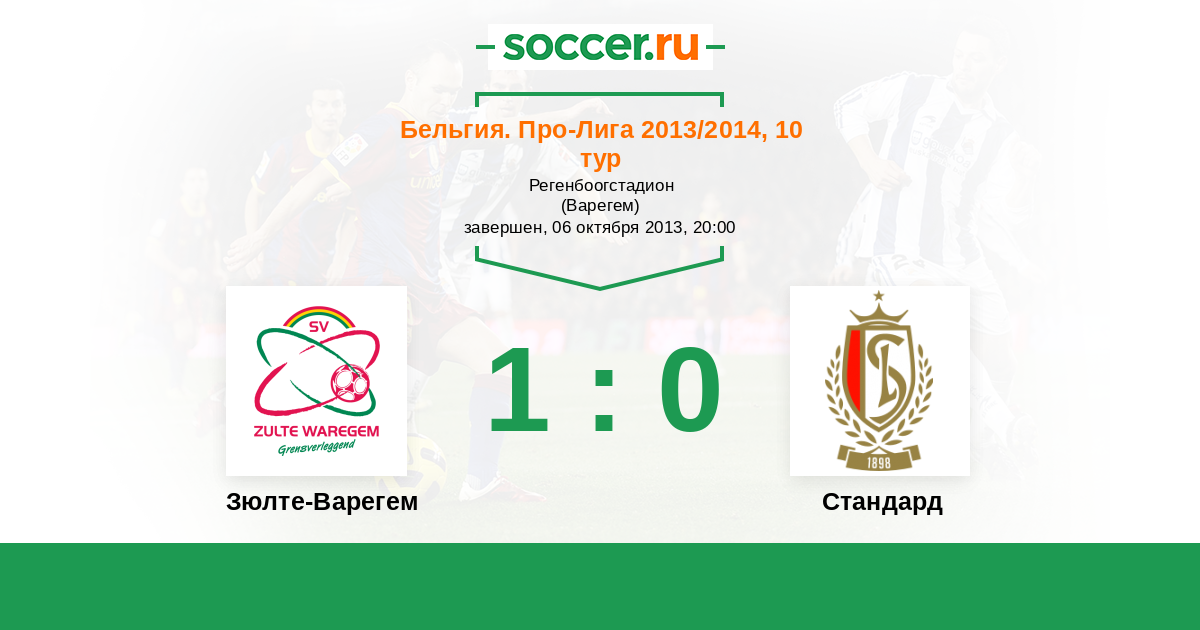 Бельгия. Про-Лига 19.10.2014 Стандард Логотип футбольный клуб Стандард (Льеж) 1:2 Логотип футбольный клуб Зюлте-Варегем Зюлте-Варегем