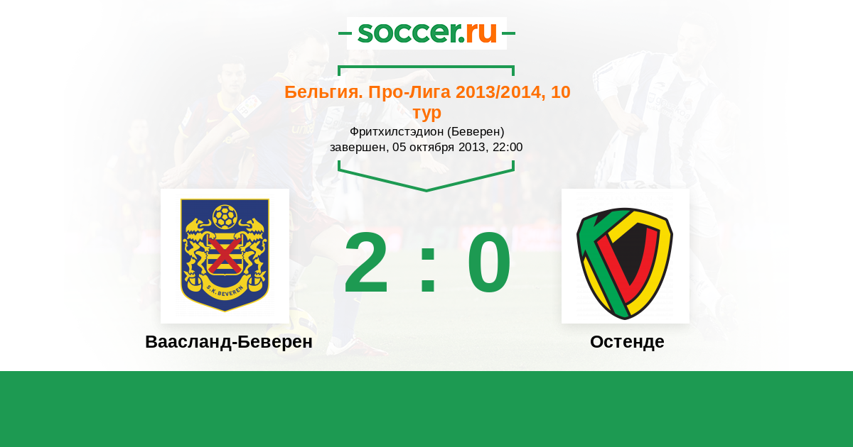 Бельгия. Про-Лига 01.11.2014 Ваасланд-Беверен Логотип футбольный клуб Ваасланд-Беверен 1:0 Логотип футбольный клуб Остенде Остенде
