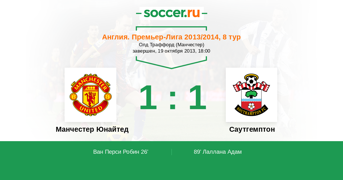 Протокол матча Манчестер Юнайтед против Саутгемптон