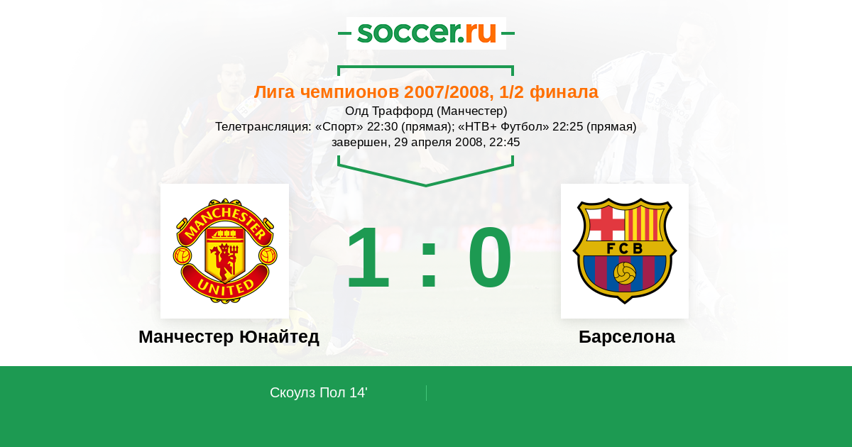 Протокол матча Манчестер Юнайтед против Барселона