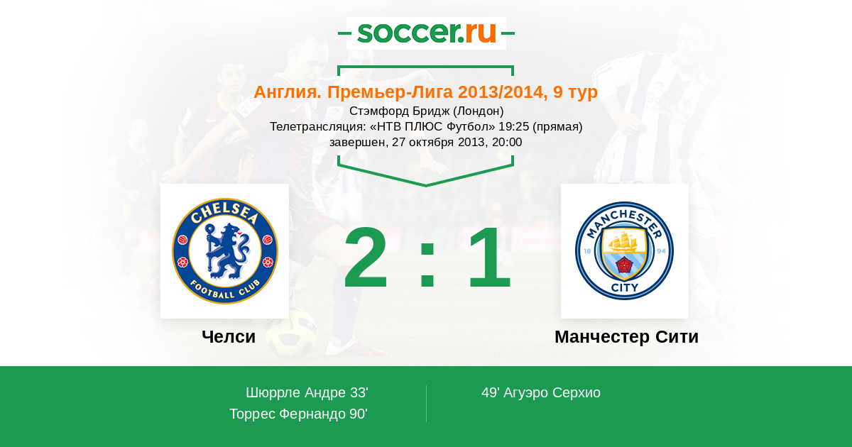 Протокол матча Челси против Манчестер Сити