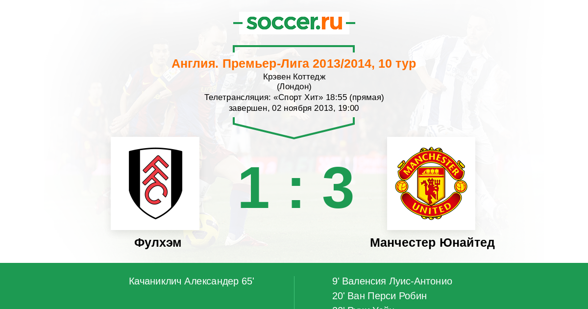 Протокол матча Фулхэм против Манчестер Юнайтед