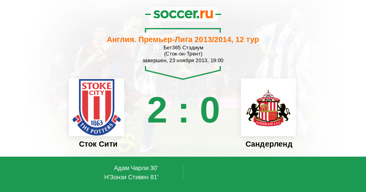 Протокол матча Сток Сити против Сандерленд