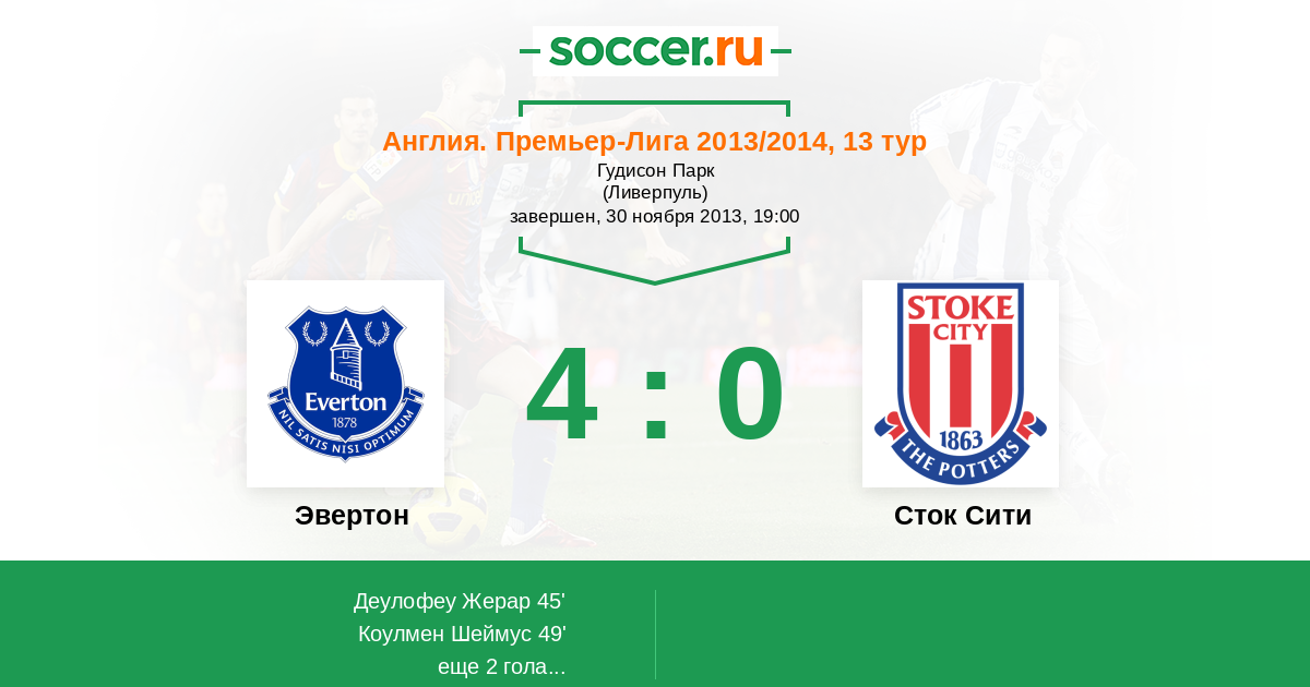 Протокол матча Эвертон против Сток Сити