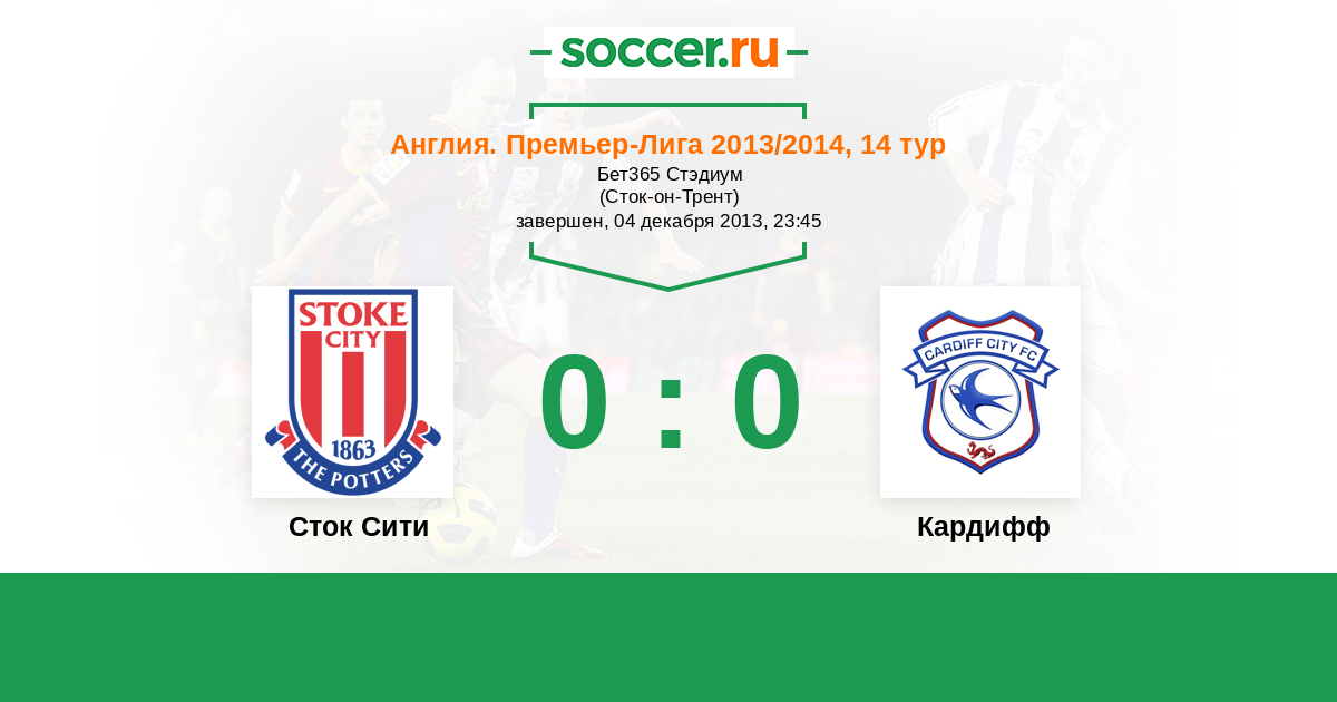 Протокол матча Сток Сити против Кардифф