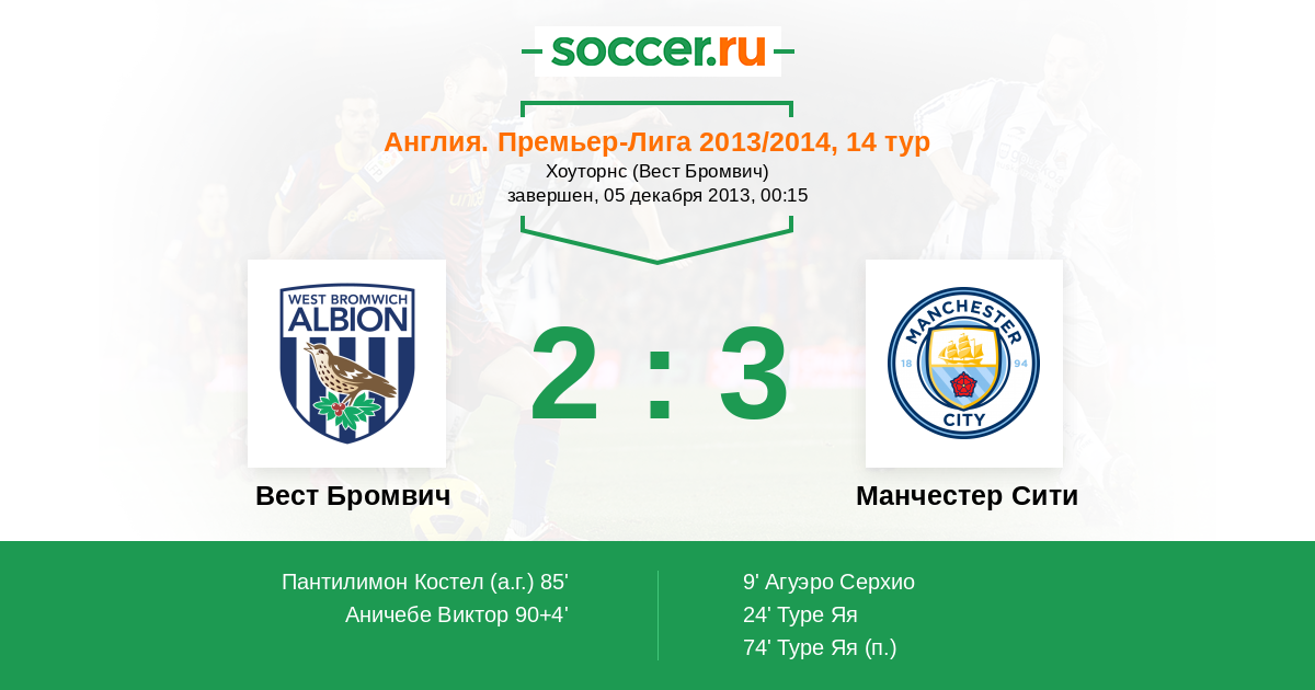 Протокол матча Вест Бромвич против Манчестер Сити