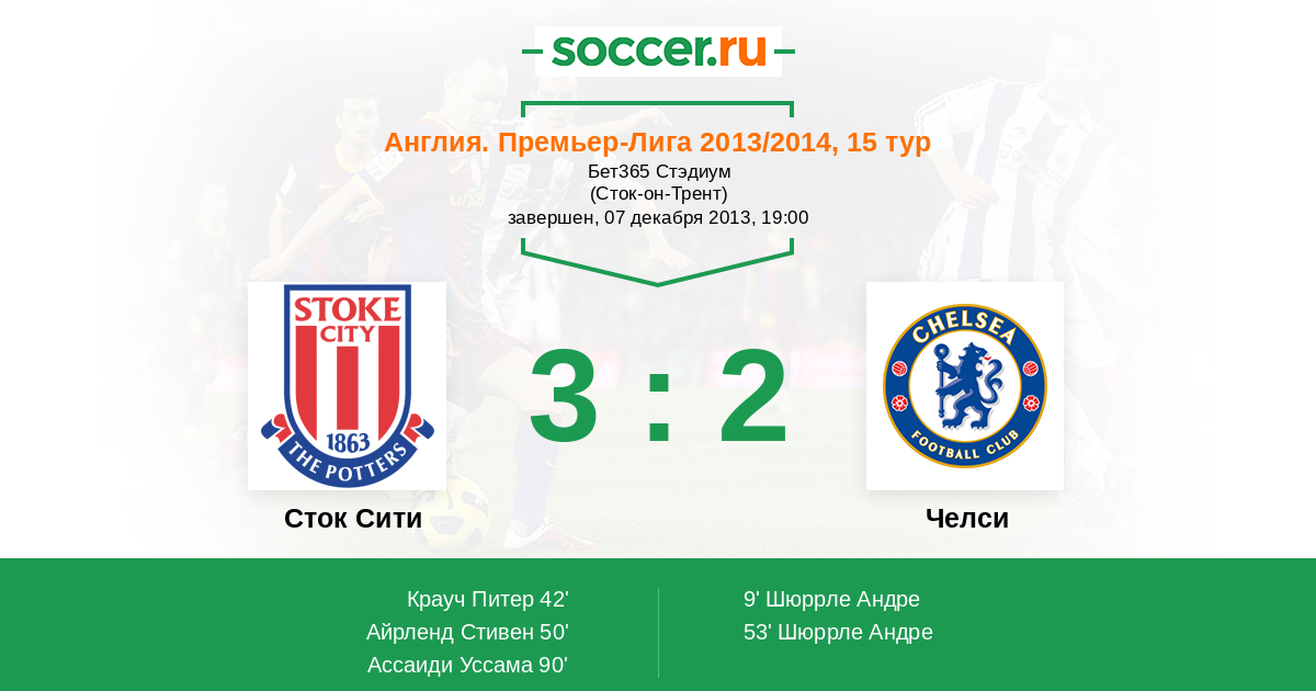 Протокол матча Сток Сити против Челси