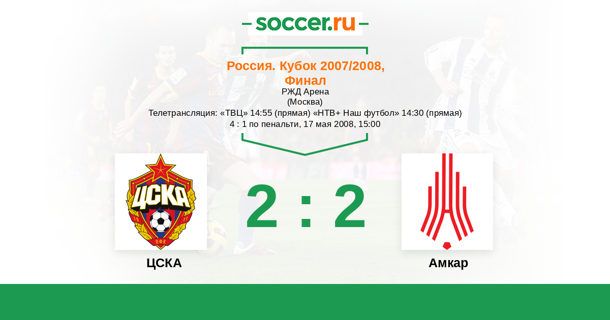 Телетрансляция: «ТВЦ» 14:55 (прямая) «НТВ+ Наш футбол» 14:30 (прямая)