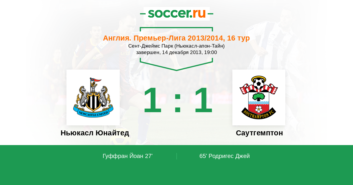 Протокол матча Ньюкасл Юнайтед против Саутгемптон