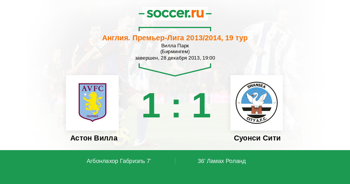 Протокол матча Астон Вилла против Суонси Сити
