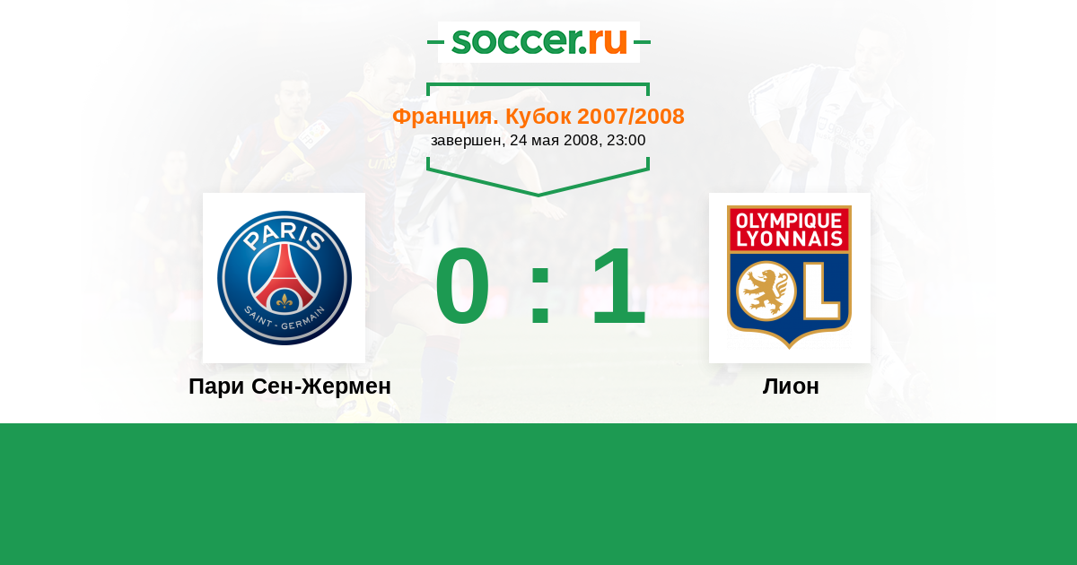 Франция. Лига 1 23.03.2008 Лион Логотип футбольный клуб Лион 4:2 Логотип футбольный клуб Пари Сен-Жермен (Париж) Пари Сен-Жермен