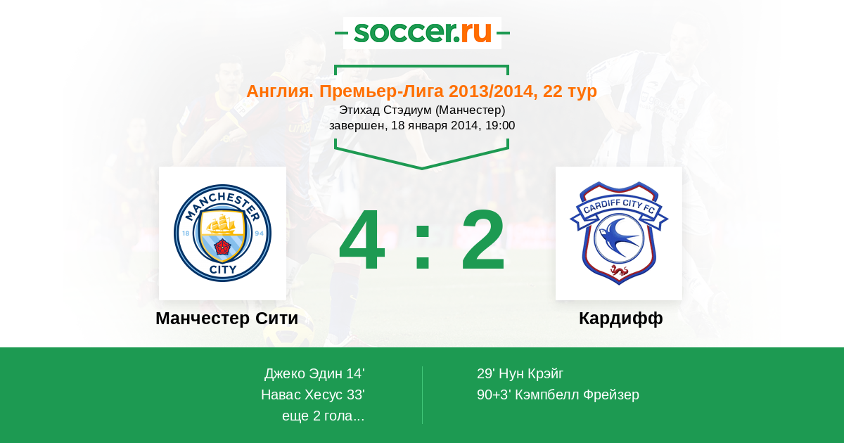 Протокол матча Манчестер Сити против Кардифф