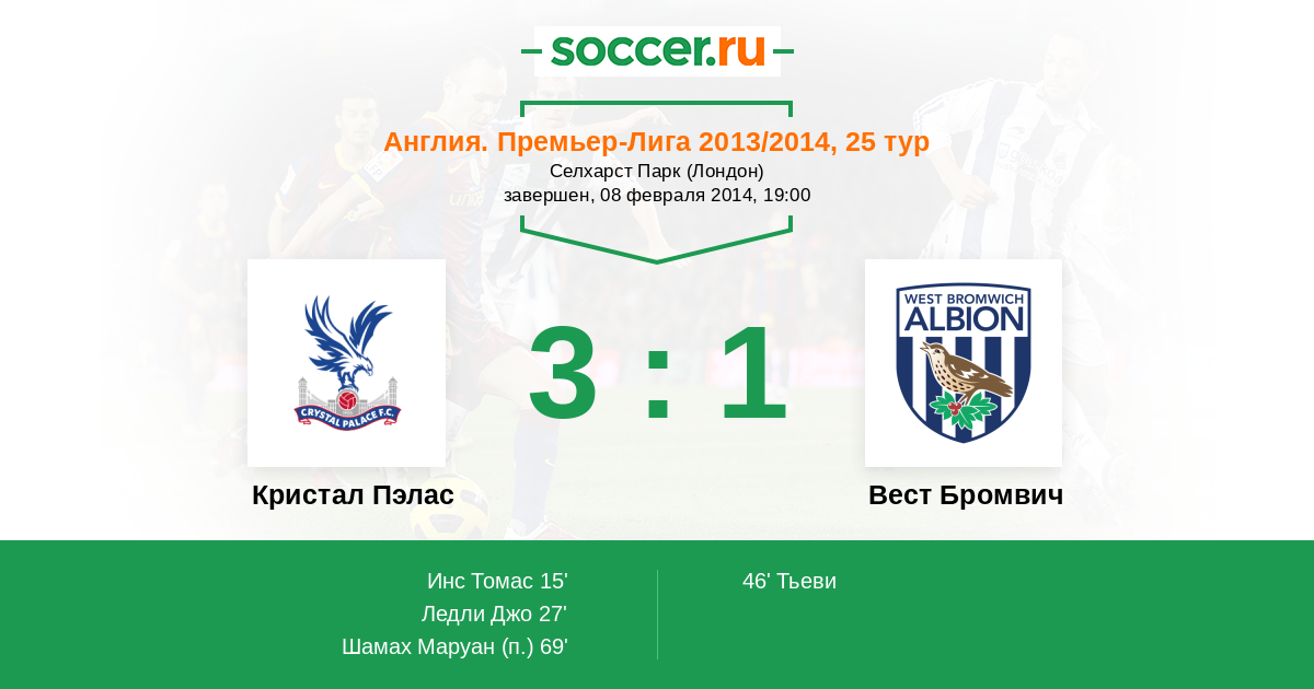 Протокол матча Кристал Пэлас против Вест Бромвич