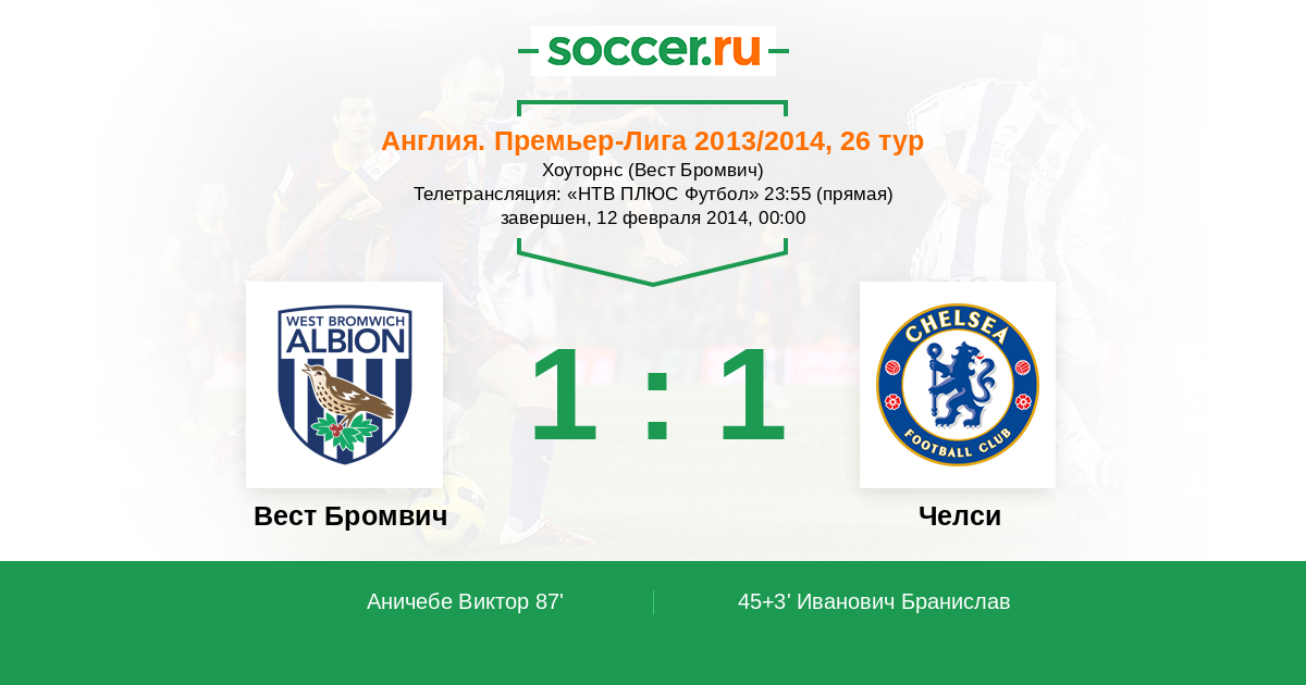 Протокол матча Вест Бромвич против Челси