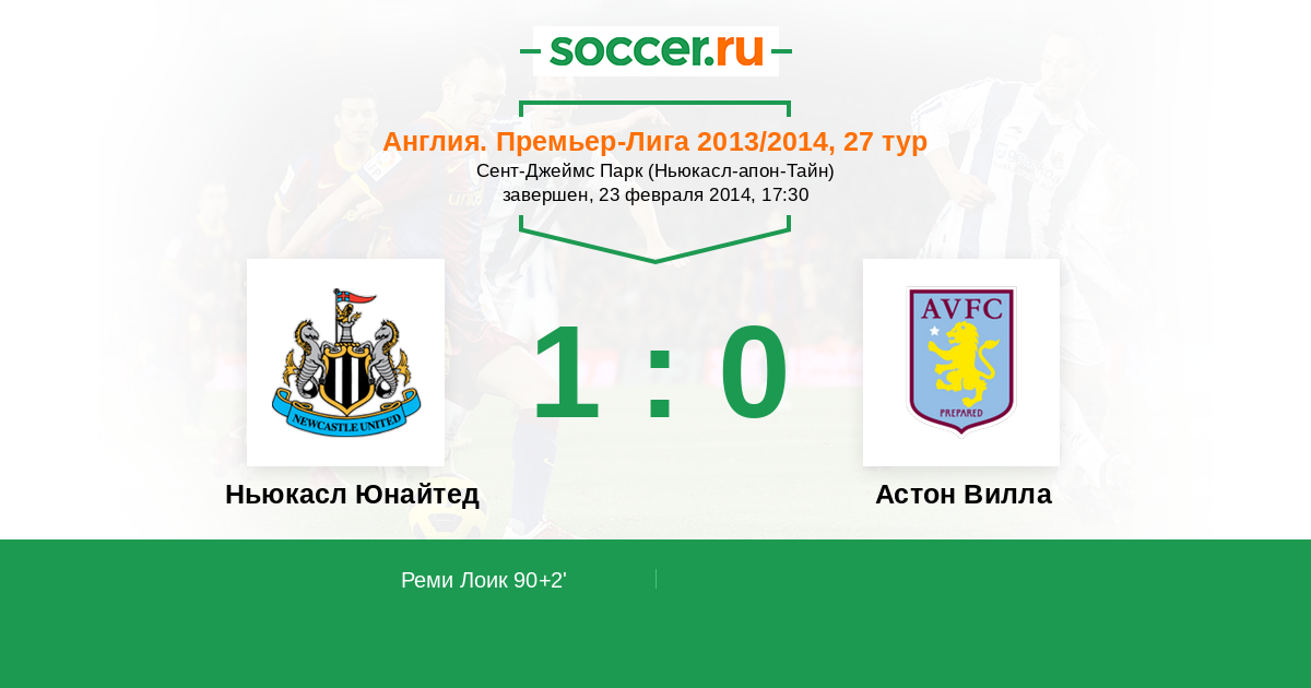 Протокол матча Ньюкасл Юнайтед против Астон Вилла