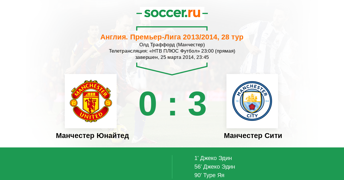 Протокол матча Манчестер Юнайтед против Манчестер Сити