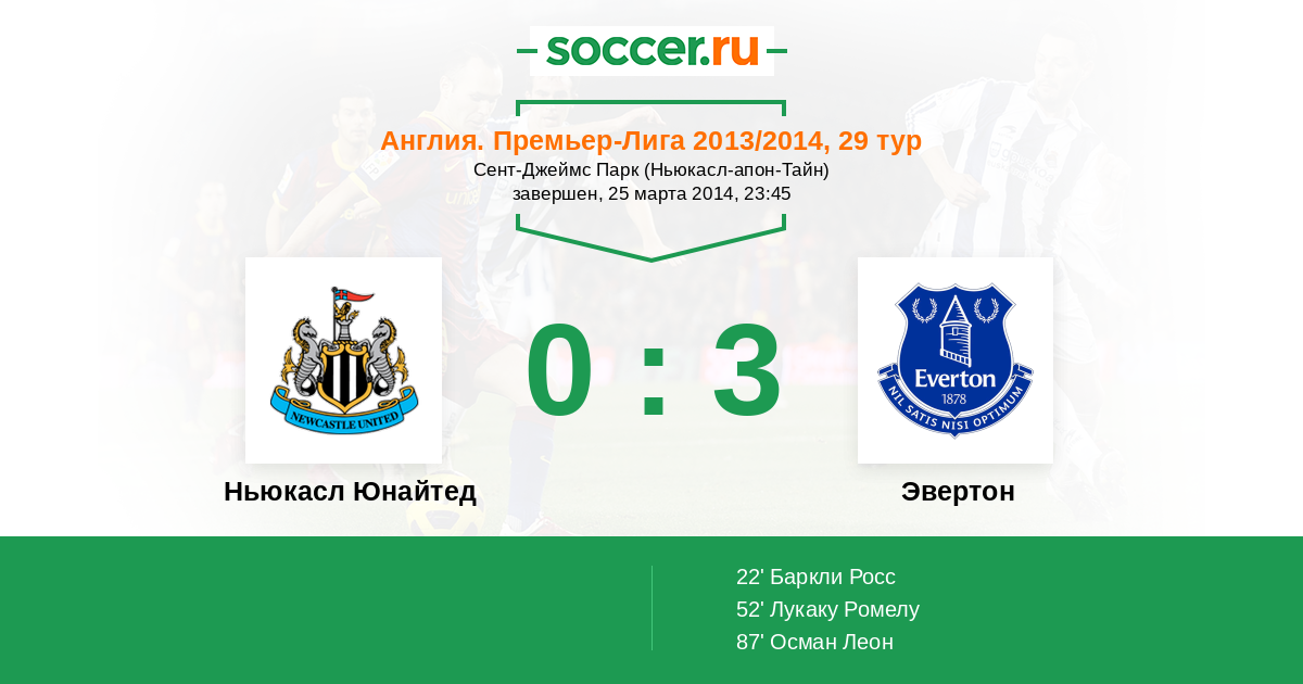 Протокол матча Ньюкасл Юнайтед против Эвертон
