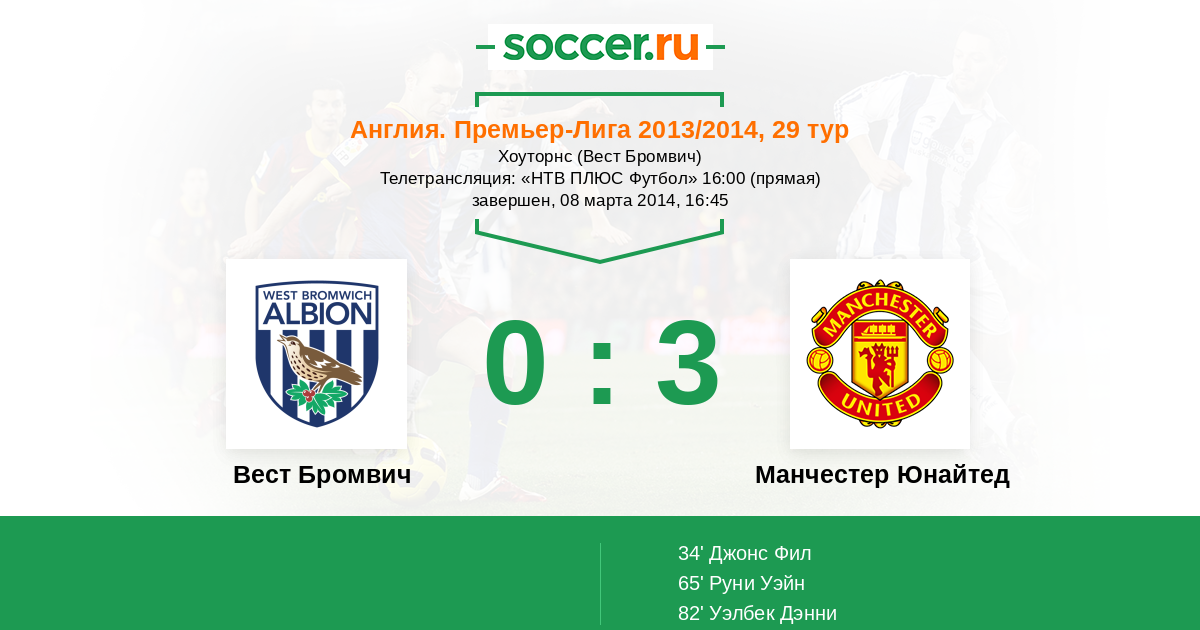 Протокол матча Вест Бромвич против Манчестер Юнайтед