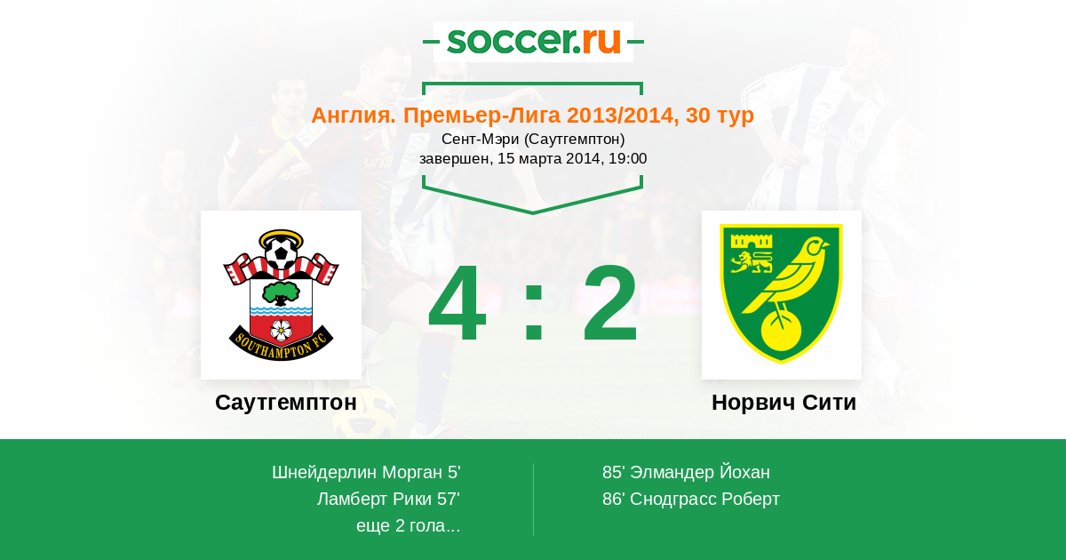 Протокол матча Саутгемптон против Норвич Сити