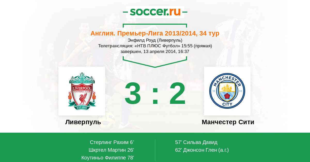 Протокол матча Ливерпуль против Манчестер Сити