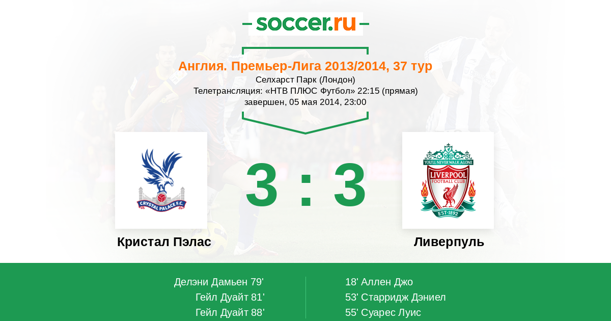 Протокол матча Кристал Пэлас против Ливерпуль