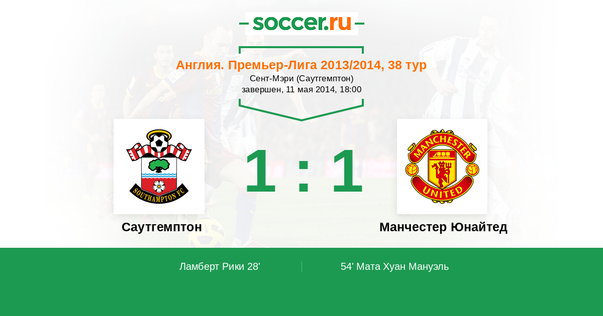Протокол матча Саутгемптон против Манчестер Юнайтед