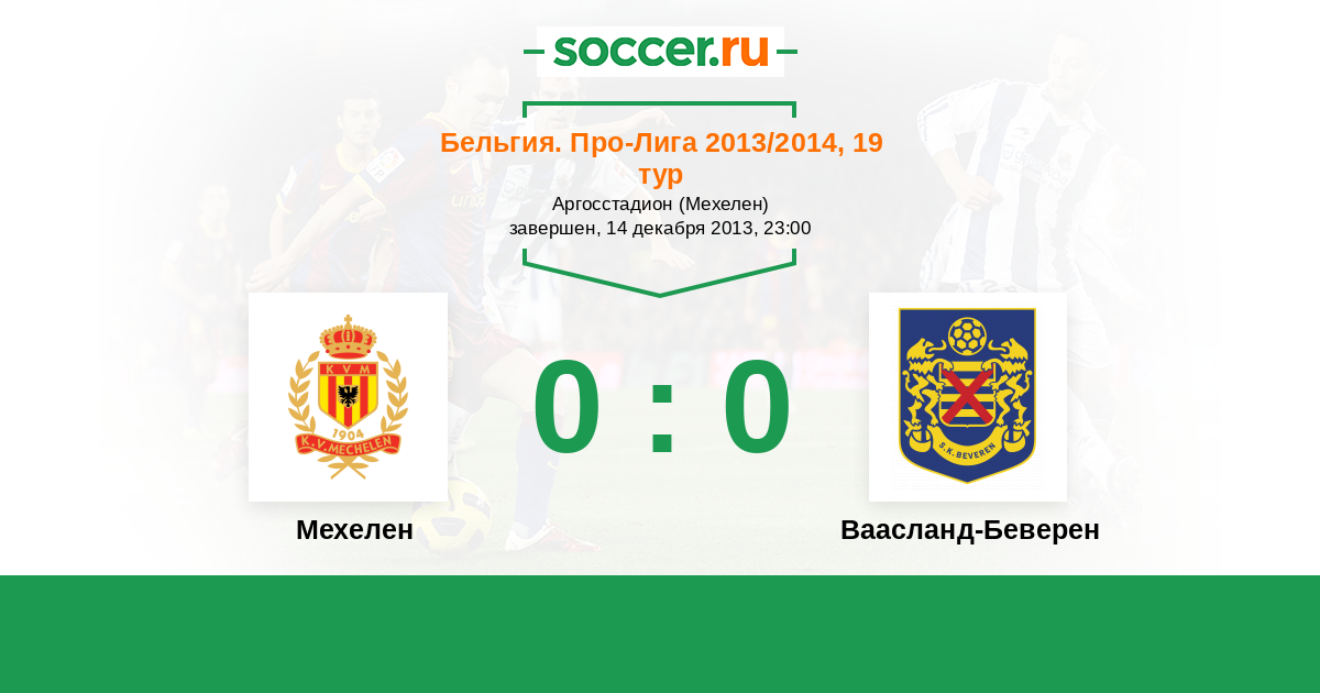 Бельгия. Про-Лига 10.08.2013 Ваасланд-Беверен Логотип футбольный клуб Ваасланд-Беверен 0:0 Логотип футбольный клуб Мехелен Мехелен