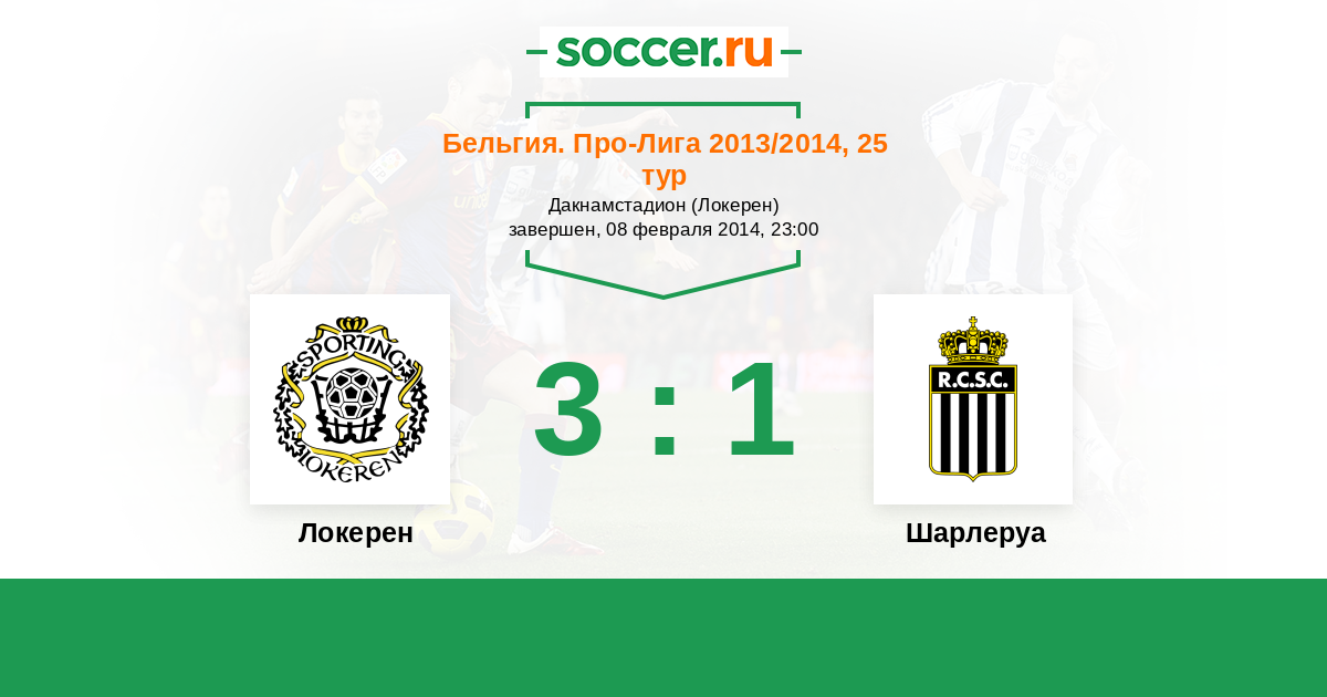 Бельгия. Про-Лига 09.03.2013 Локерен Логотип футбольный клуб Локерен 1:1 Логотип футбольный клуб Шарлеруа Шарлеруа