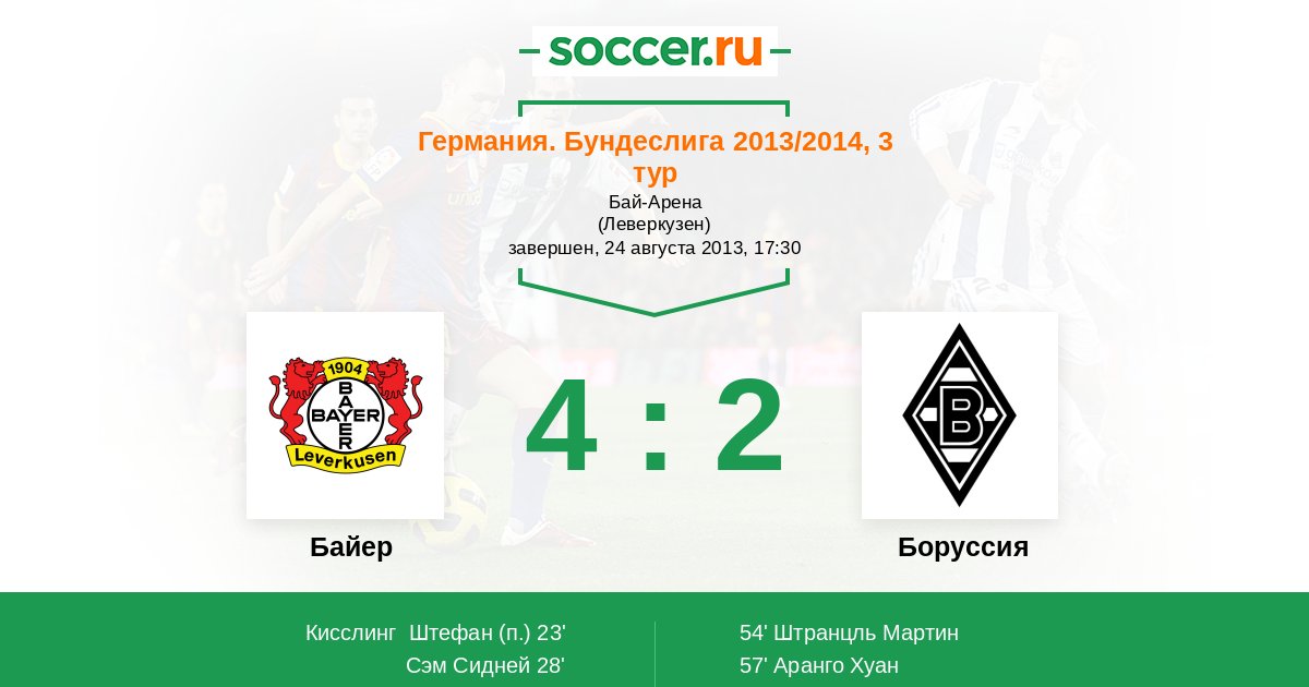Протокол матча Байер против Боруссия
