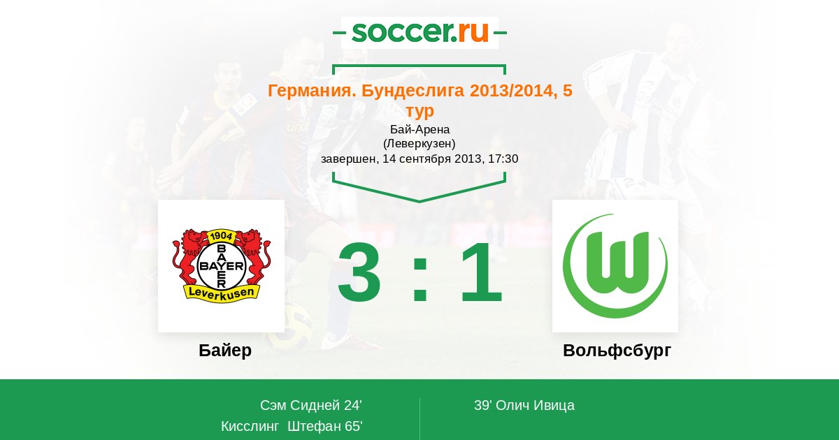 Протокол матча Байер против Вольфсбург